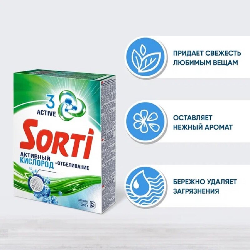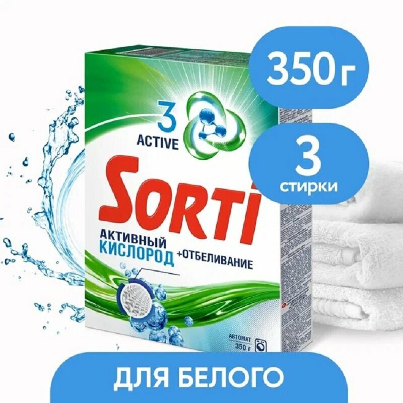 Стиральный порошок Sorti автомат, Активный кислород, для белого белья, 350 г