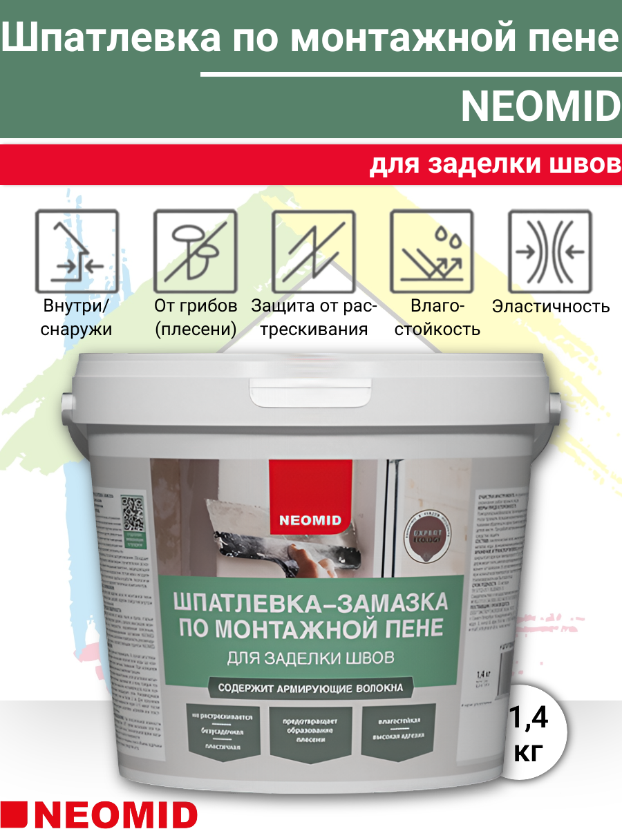 Шпатлевка- замазка по монтажной пене для заделки швов NEOMID (1,4 кг) ЭЭ