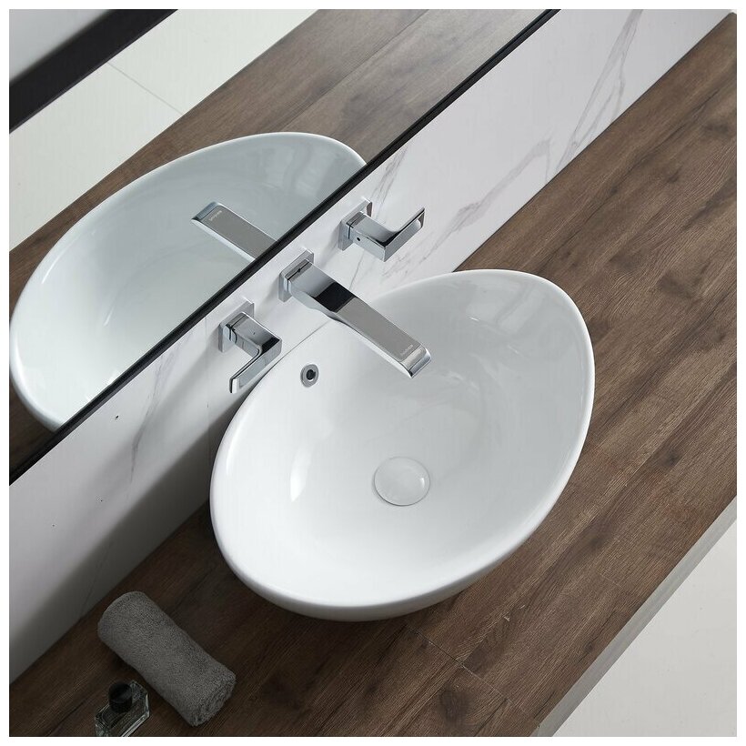 Купить Раковина для ванной, Mira MR-8150, накладная, овальная, в ванную, с антигрязевым покрытием, с переливным отверстием, без отверстия под смеситель