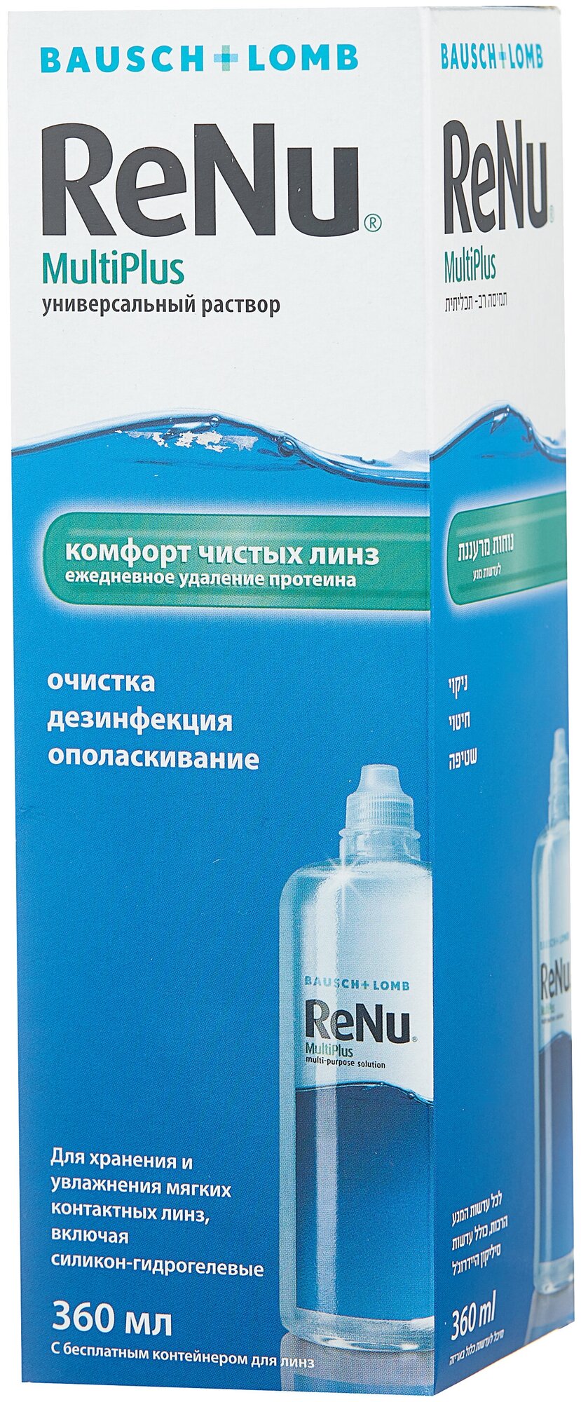 Многоцелевой раствор Bausch+Lomb ReNu MultiPlus, 360 мл с контейнером для линз (Реню Мультиплюс)