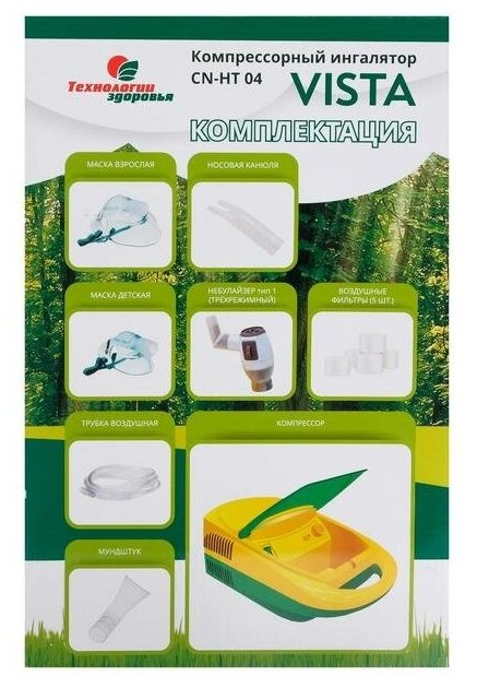 Ингалятор (небулайзер) CN-HT04 Виста, компрессорный, 2-12 мл, 60 дБ, жёлто-зелёный Технологии здор .