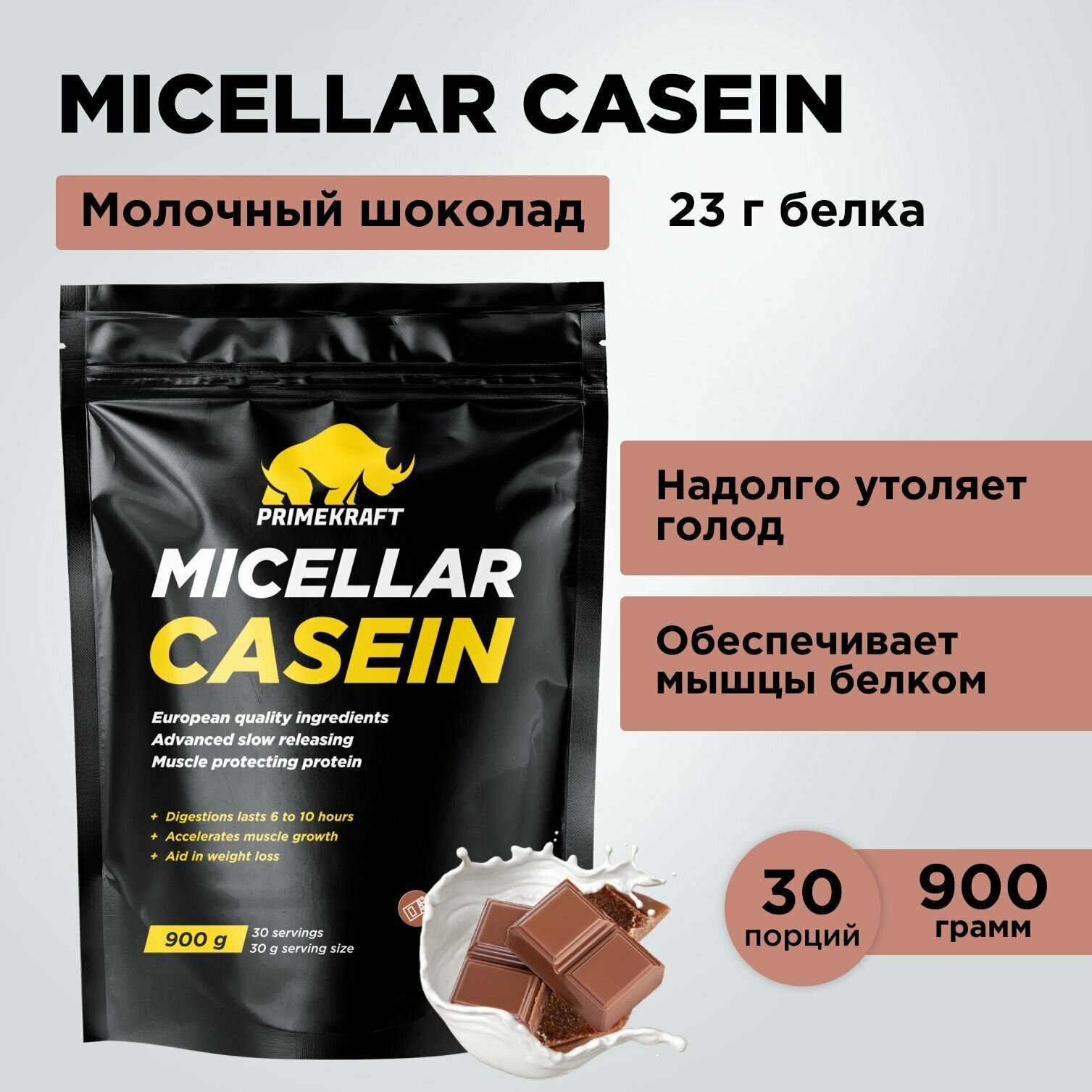 Казеиновый протеин Prime Kraft Micellar Casein, 900 грамм, вкус: молочный шоколад