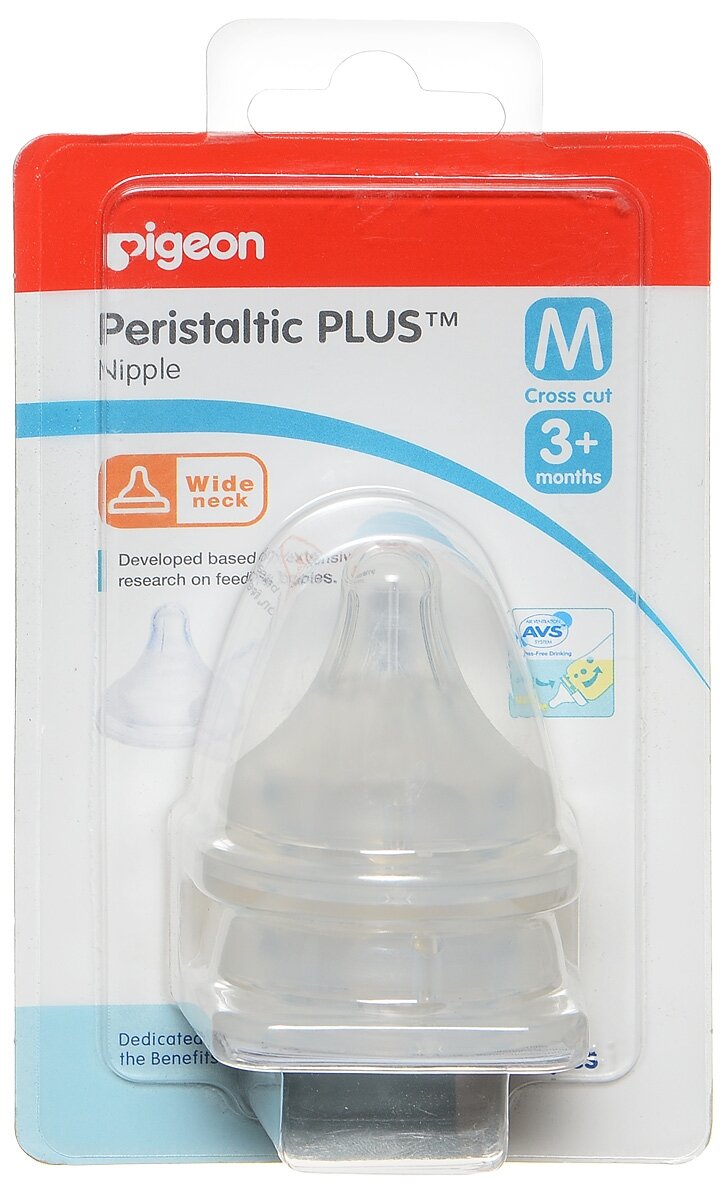 Соска Pigeon Peristaltic Plus для бут. с шир. горлом, M (3 мес.+), 2 шт.