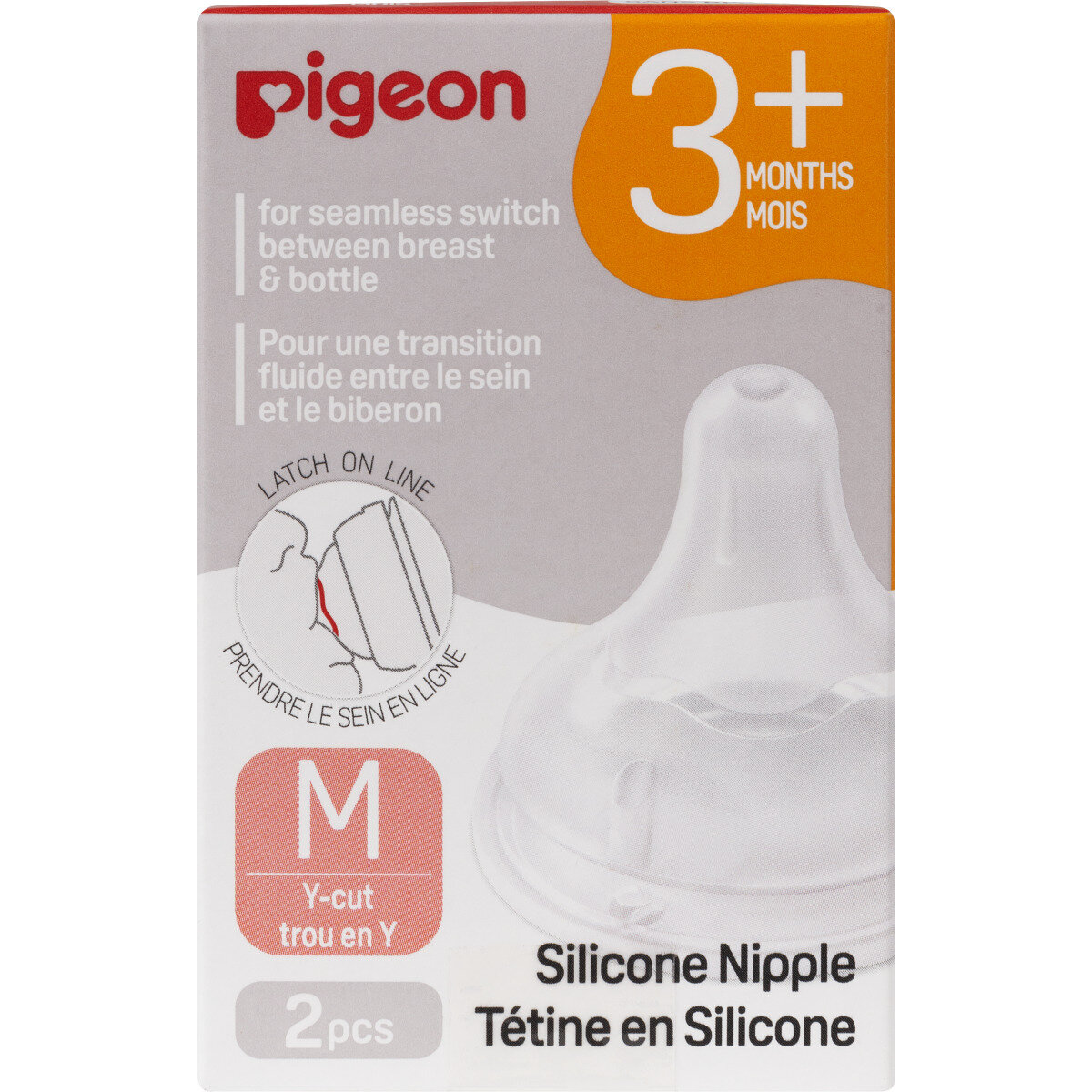 Соска из силикона PIGEON для бутылочки для кормления, M (3+мес.), 2шт