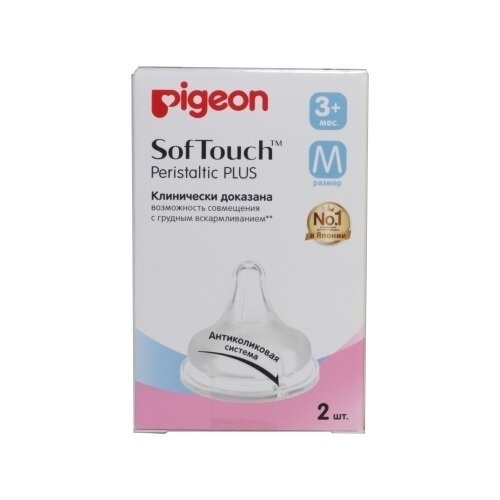PIGEON Соска для бутылки SofTouchPeristaltic PLUS размер М возраст3 мес 2шт