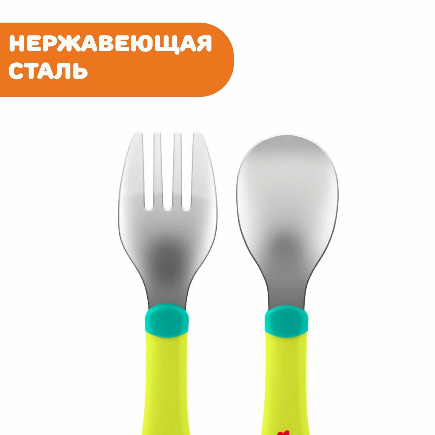 Набор детских столовых металлических приборов Chicco Metal Cutlery ложка и вилка от 18 месяцев зеленый
