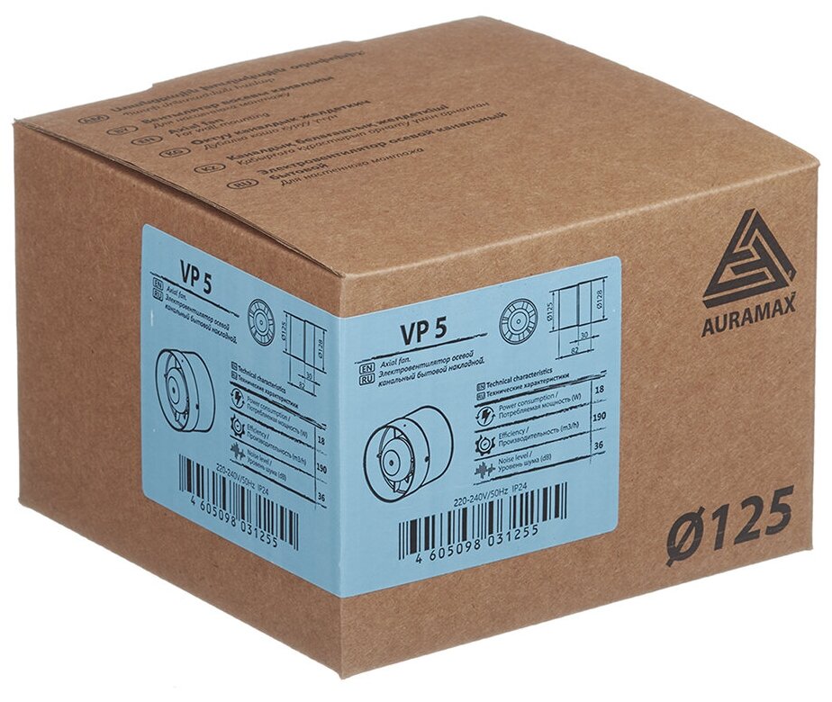 Вентилятор канальный AURAMAX VP-5, D125 мм. осевой