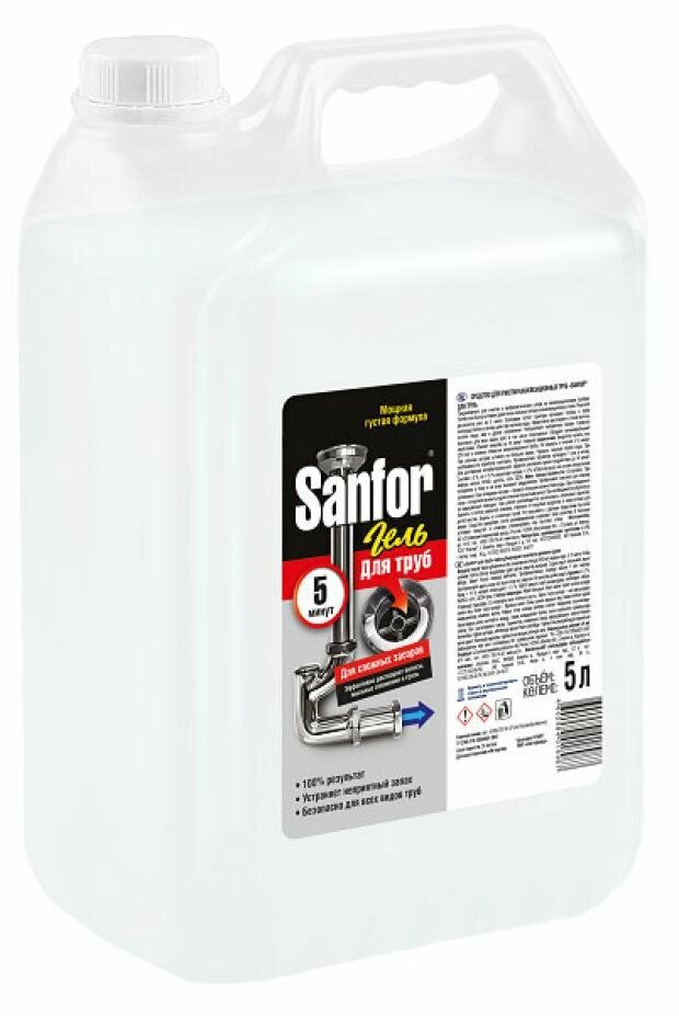 Sanfor Гель для сложных засоров труб 5 минут, 5 л