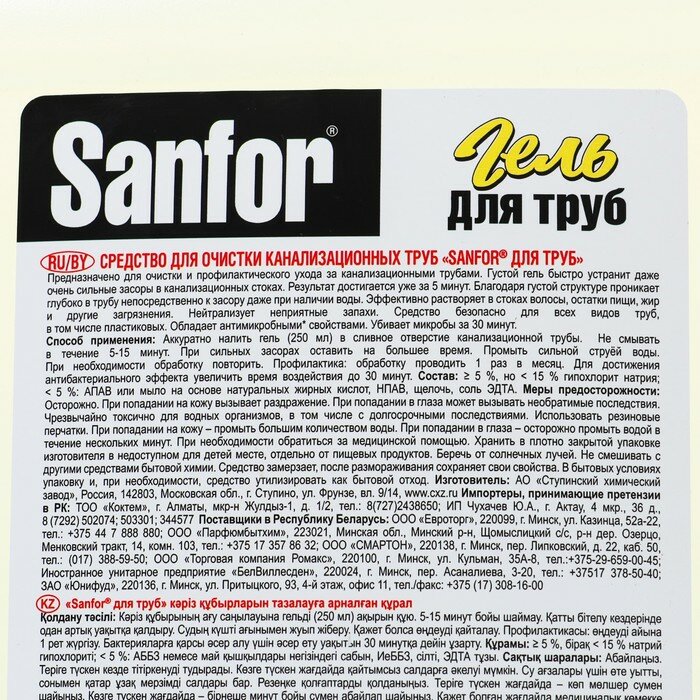 Sanfor Гель для труб для сложных засоров, 750 мл (2 шт)