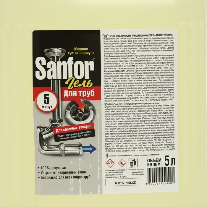Sanfor Гель для канализационных труб 5 минут, для сложных засоров 5 л