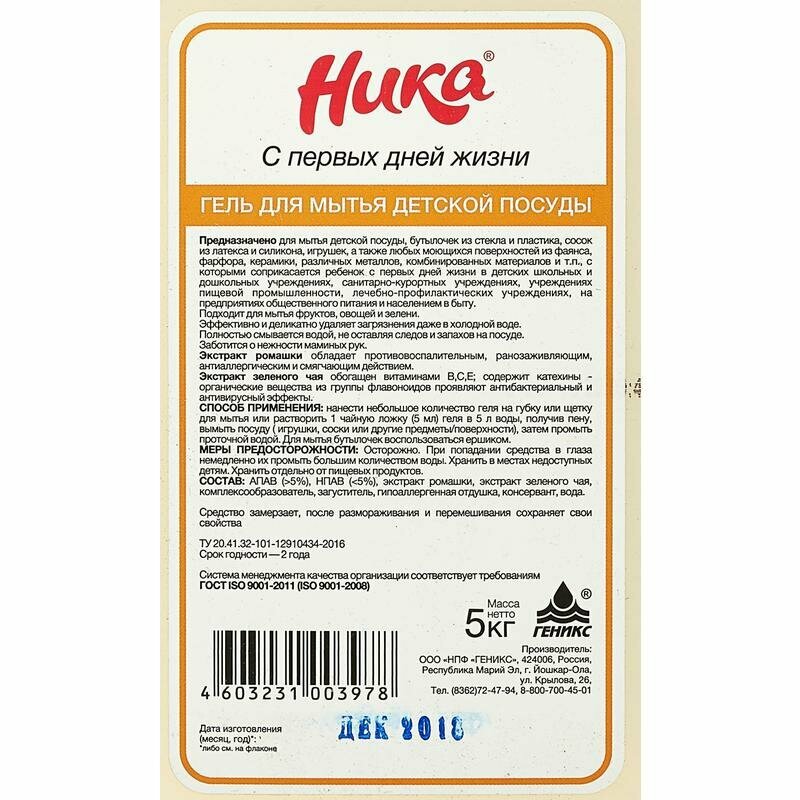 Купить НИКА Гель для мытья детской посуды (5 кг)