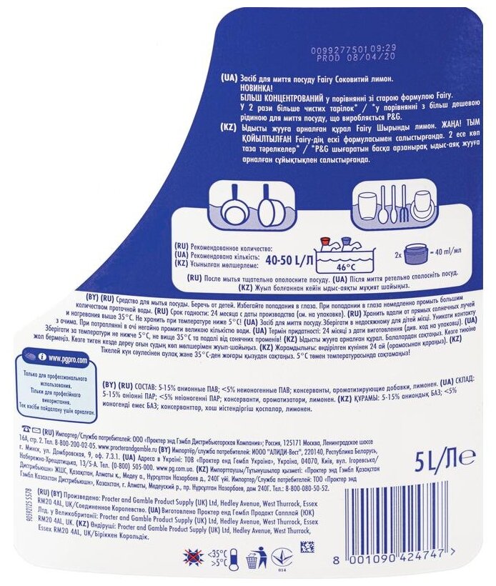 Средство для мытья посуды Fairy Professional "Лимон", концентрат-гель, канистра 5л (8001090424747) интересное: