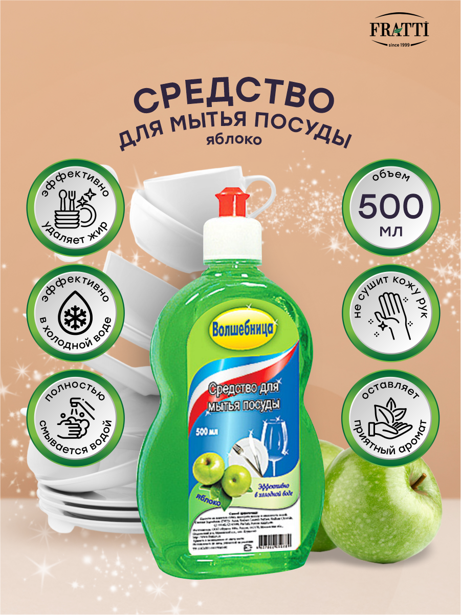 Средство для мытья посуды волшебница Яблоко 500 мл. интересное: