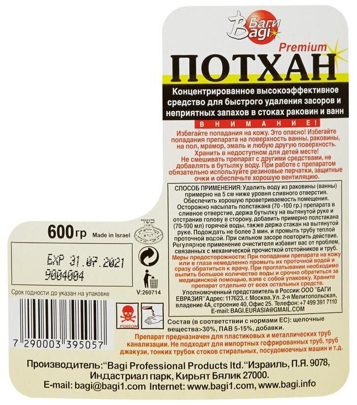 Ниже Вы можете прочитать отзывы на Bagi гранулы от засоров Потхан, 0.6 кг, ознакомится с подробными характеристиками, посмотреть интересные обзоры и фотографии на Bagi гранулы от засоров Потхан, 0.6 кг.