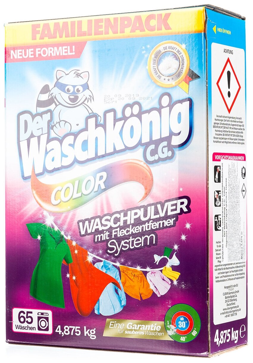 Купить Порошок стиральный универсальный 4,875кг Der Waschkonig C.G. Color Clovin Germany GmbH