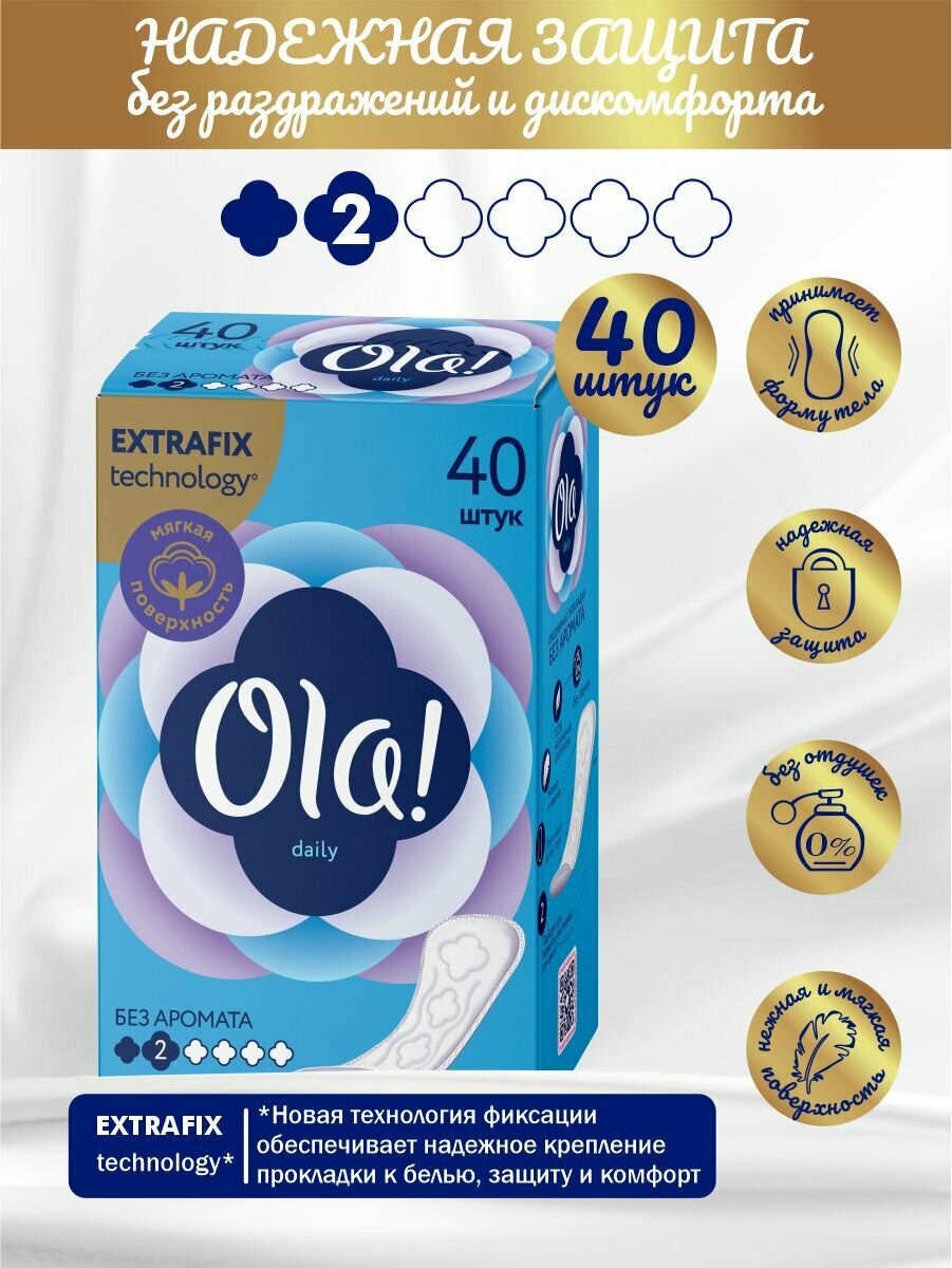 Ola! прокладки ежедневные Daily Без аромата, 2 капли, 40 шт.