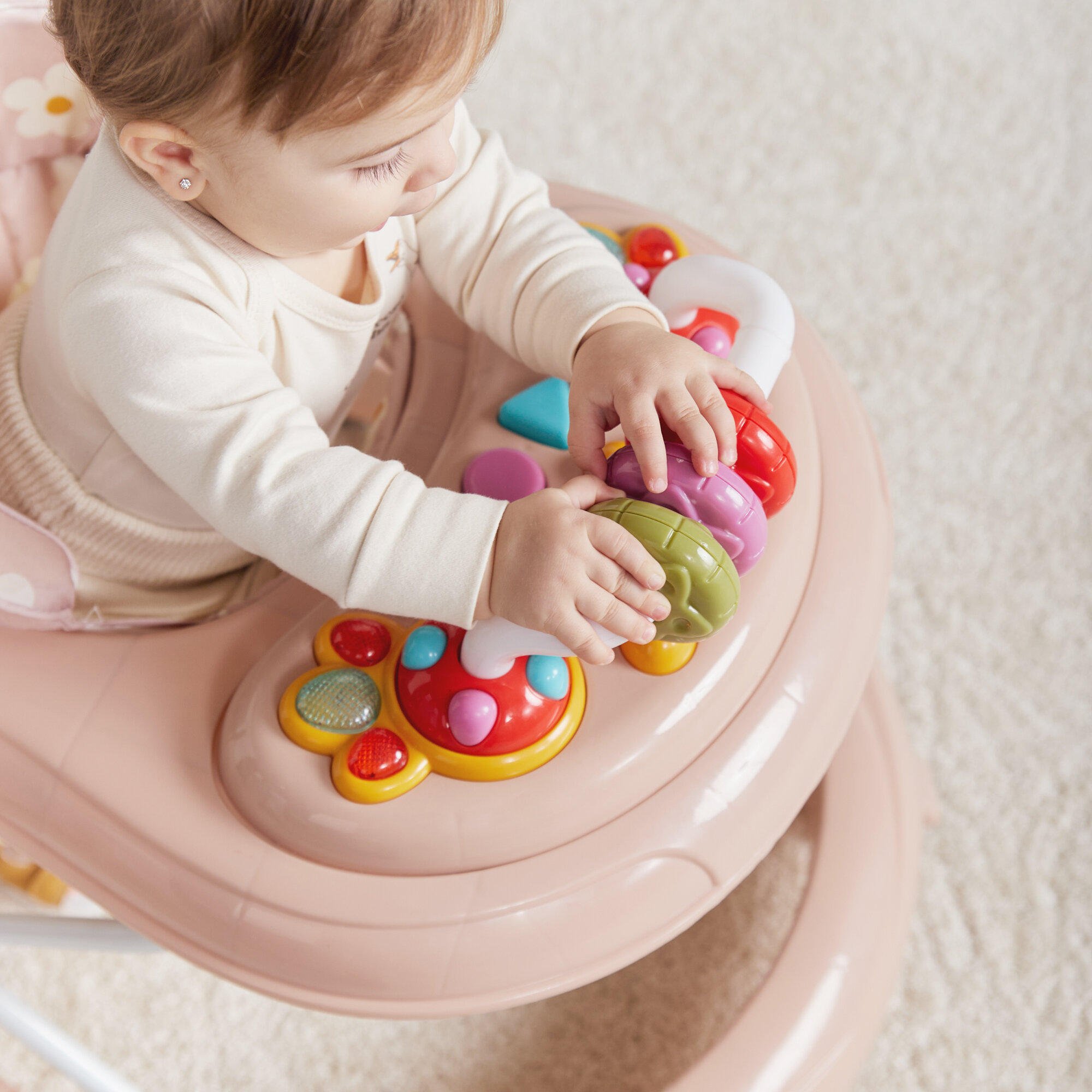 Ходунки детские Happy Baby SMILEY V2, с игровой панелью, 12 мелодий, регулировка сиденья, силиконовые колесики, розовые