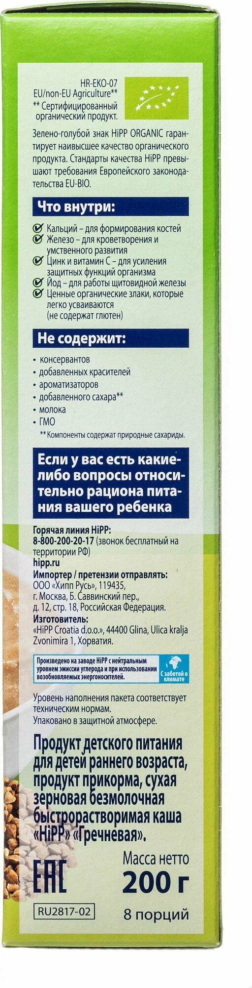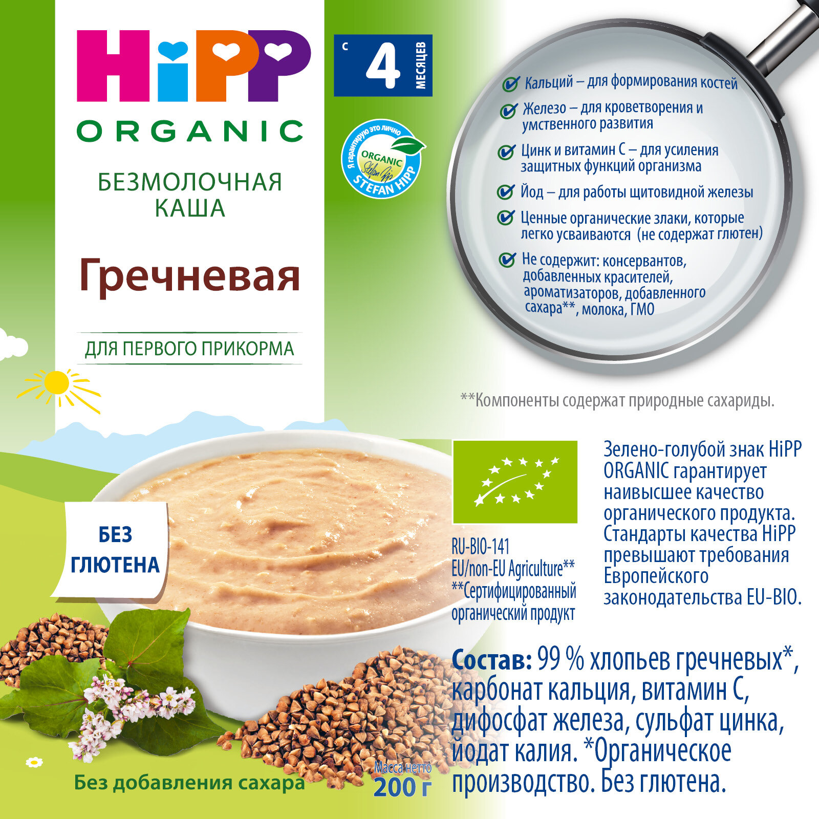 Органическая безмолочная каша HiPP "100% Гречневая", 200гр/1шт интересное: