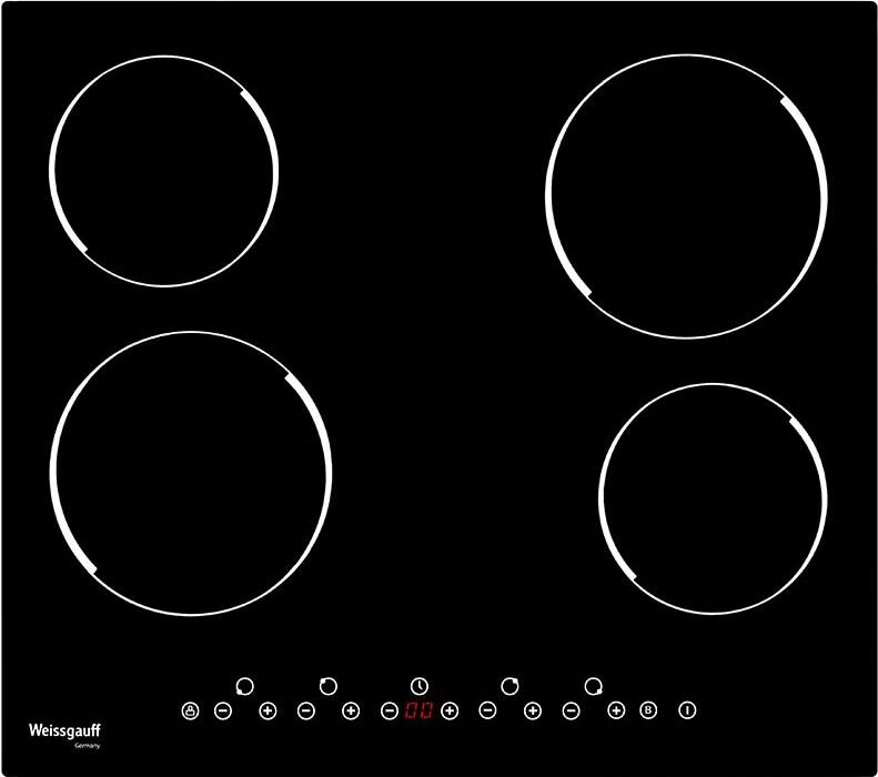 Стеклокерамическая панель Weissgauff HV 640 B Сенсорное управление One Touch, 3 года гарантии, 58 см ширина, таймер, блокировка от детей