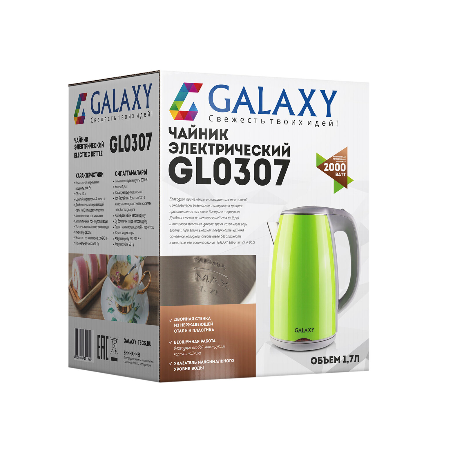 Электрический чайник Galaxy GL 0307 2000 Вт, объем 1.7 л гл0307грин