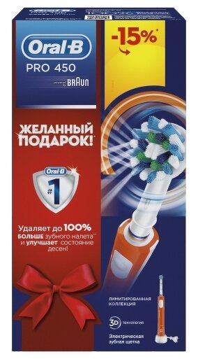 Электрическая зубная щетка Oral-B Pro 400/450 Cross Action Оранжевая интересное:
