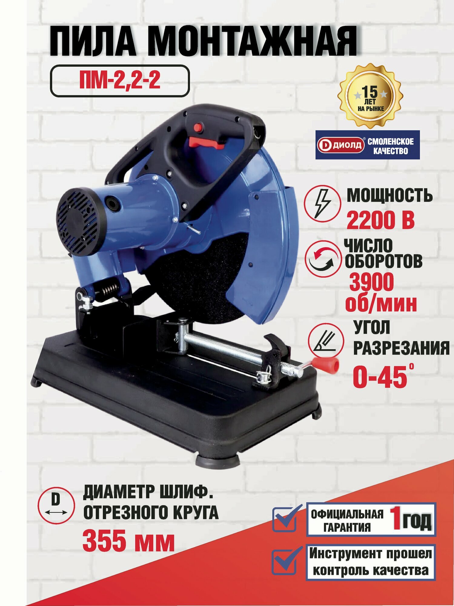 Монтажная пила Диолд ПМ-2,2-2, 2200 Вт, 3900 об/мин