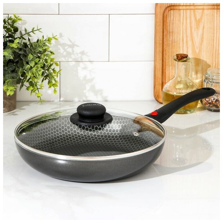 JARKO Cковорода Forever, d=26 см, съёмная ручка, стеклянная крышка, антипригарное покрытие, цвет черный