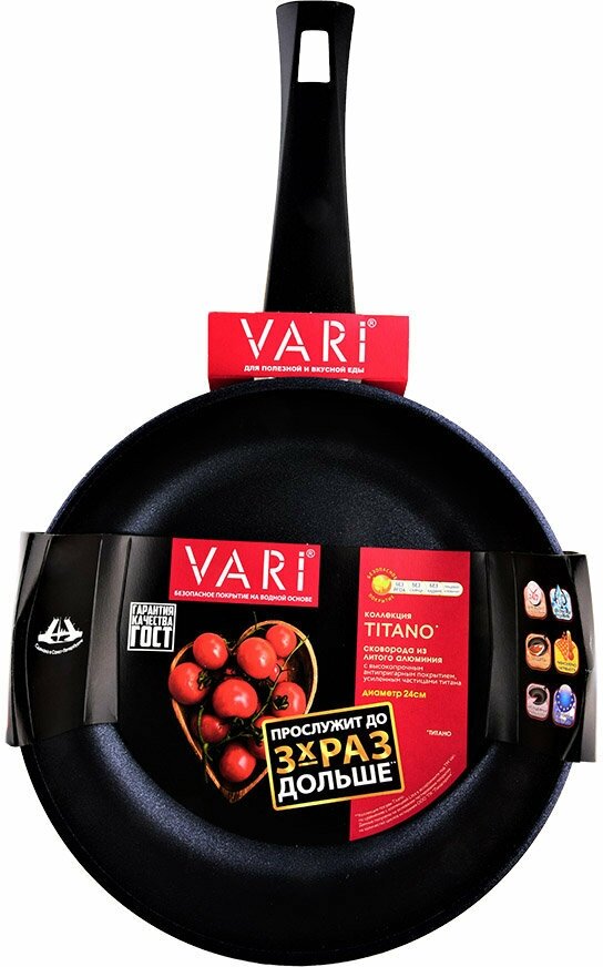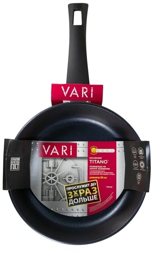 Сковорода VARI Titano 24, 24см, без крышки, черный [tn31124]
