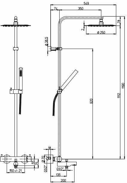 | Дополнительная информация | высота стойки для душа: 1190 мм; диаметр верхнего душа: 250 мм |