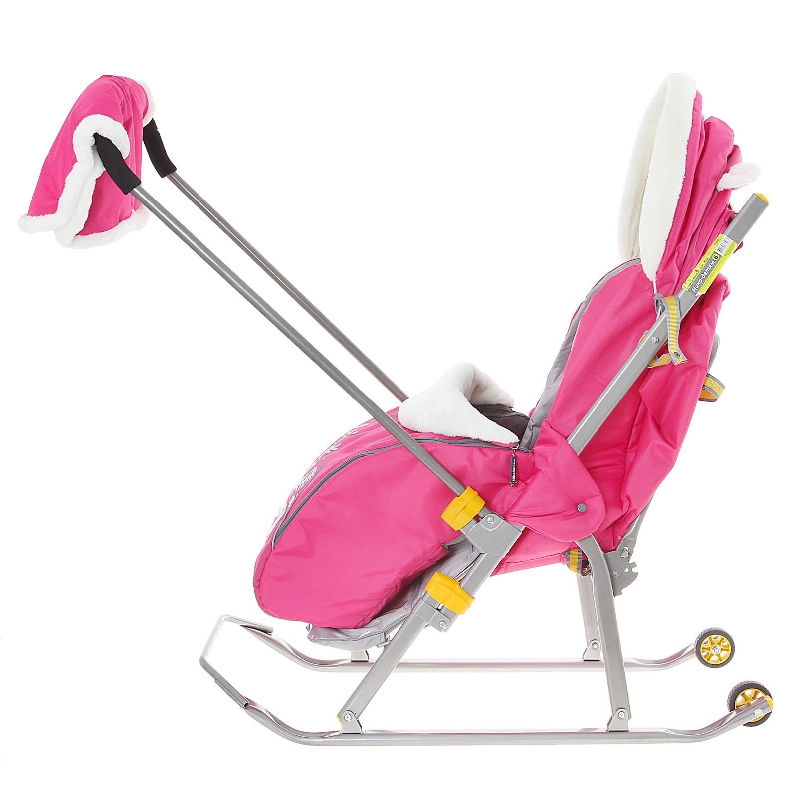 Санки-коляска "Ника детям 6" Снегири на ветк розов 1/2