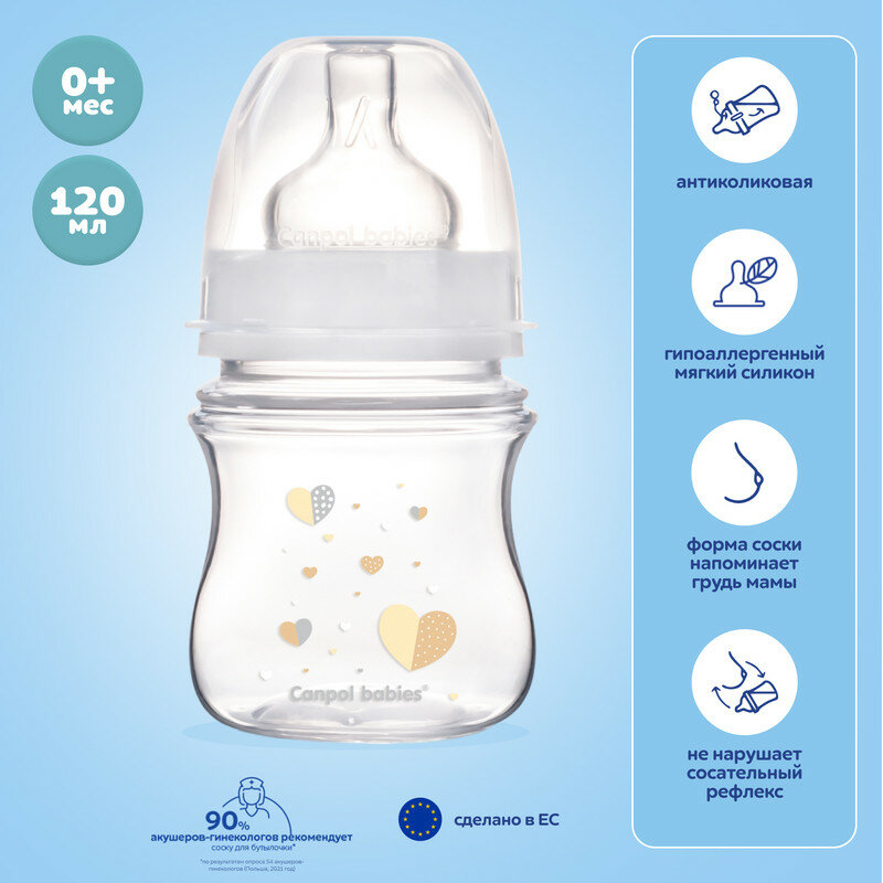 Canpol Babies Бутылочка антиколиковая с широким горлом EasyStart Newborn Baby 120 мл, с рождения, бесцветный
