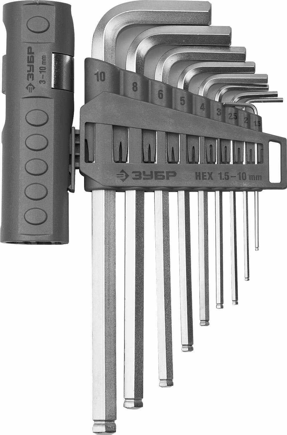 Купить Набор ЗУБР Ключи "эксперт" имбусовые длинные с шариком, Cr-Mo, сатинир. покр., держатель-рукоятка, HEX 1,5-10мм, 9 пред