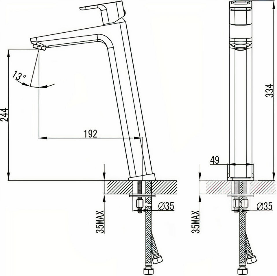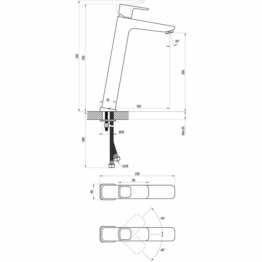 Смеситель для умывальника высокий без донного клапана 333 мм TD 015.00