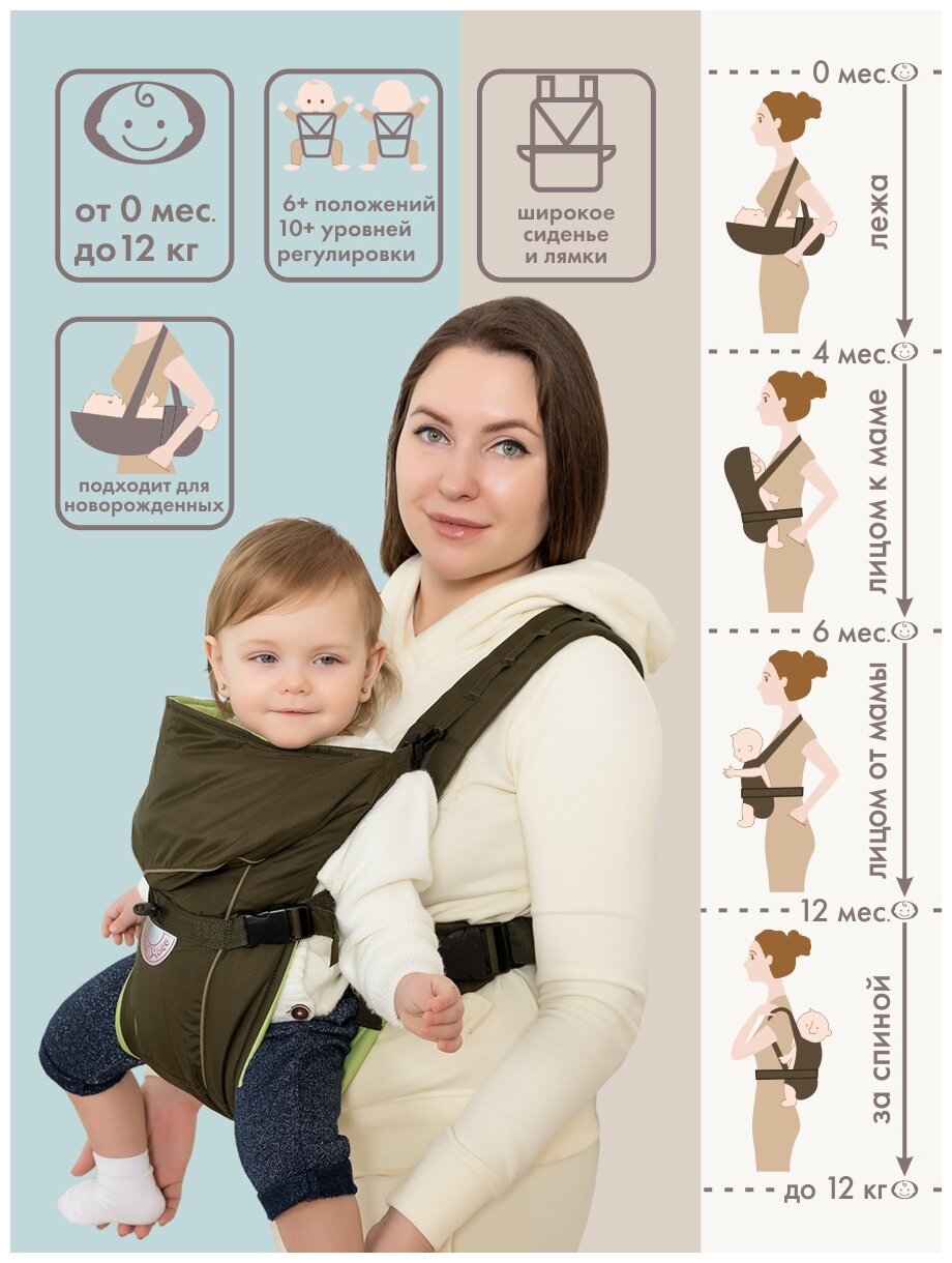 | Отзыв: | Самое главное, что ребенка можно носить как спереди, так и на спине. Разные положения. Вперед лицом, лицом к себе, лёжа, сидя. |