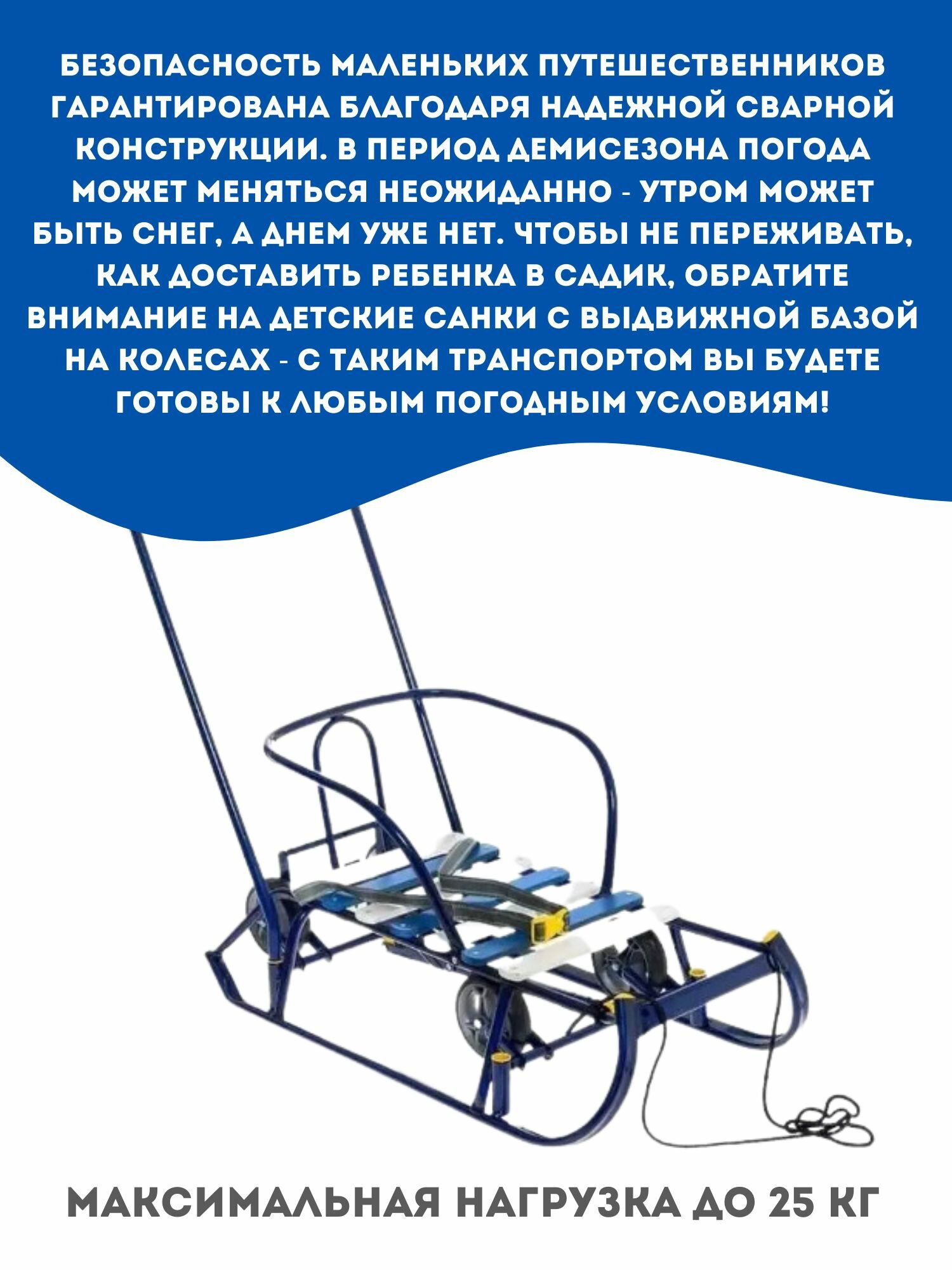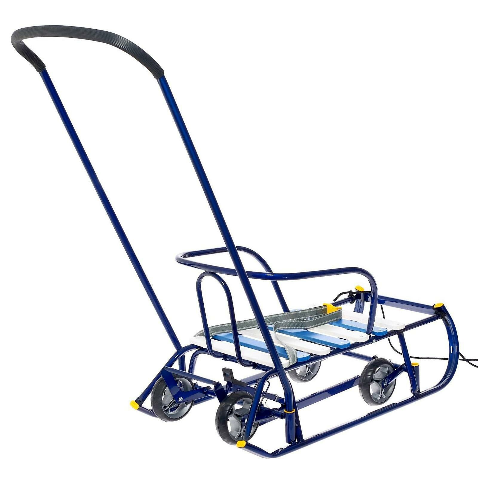 Санки детские с выдвижными колесами, спинкой и ручкой Nika "Тимка 6 универсал" (синий лак)