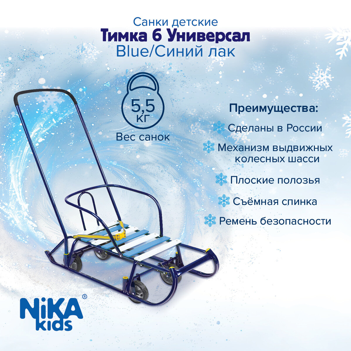 Санки Тимка 6 универсал, синий лак Nika Kids 5863563 .