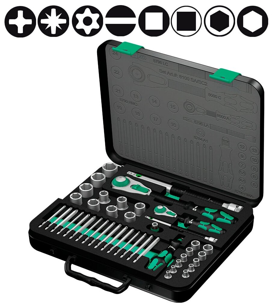 Набор головок 1/4", 1/2" WERA 8100 SA/SC 2 ZYKLOP 43 предмета WE-160785 [WE-160785]