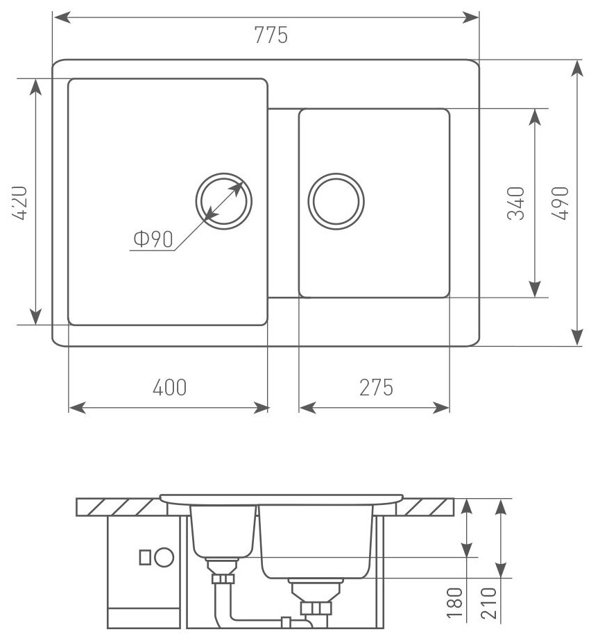 Мойка "Юкинокс" Лофт LOB400.400 -GT10P