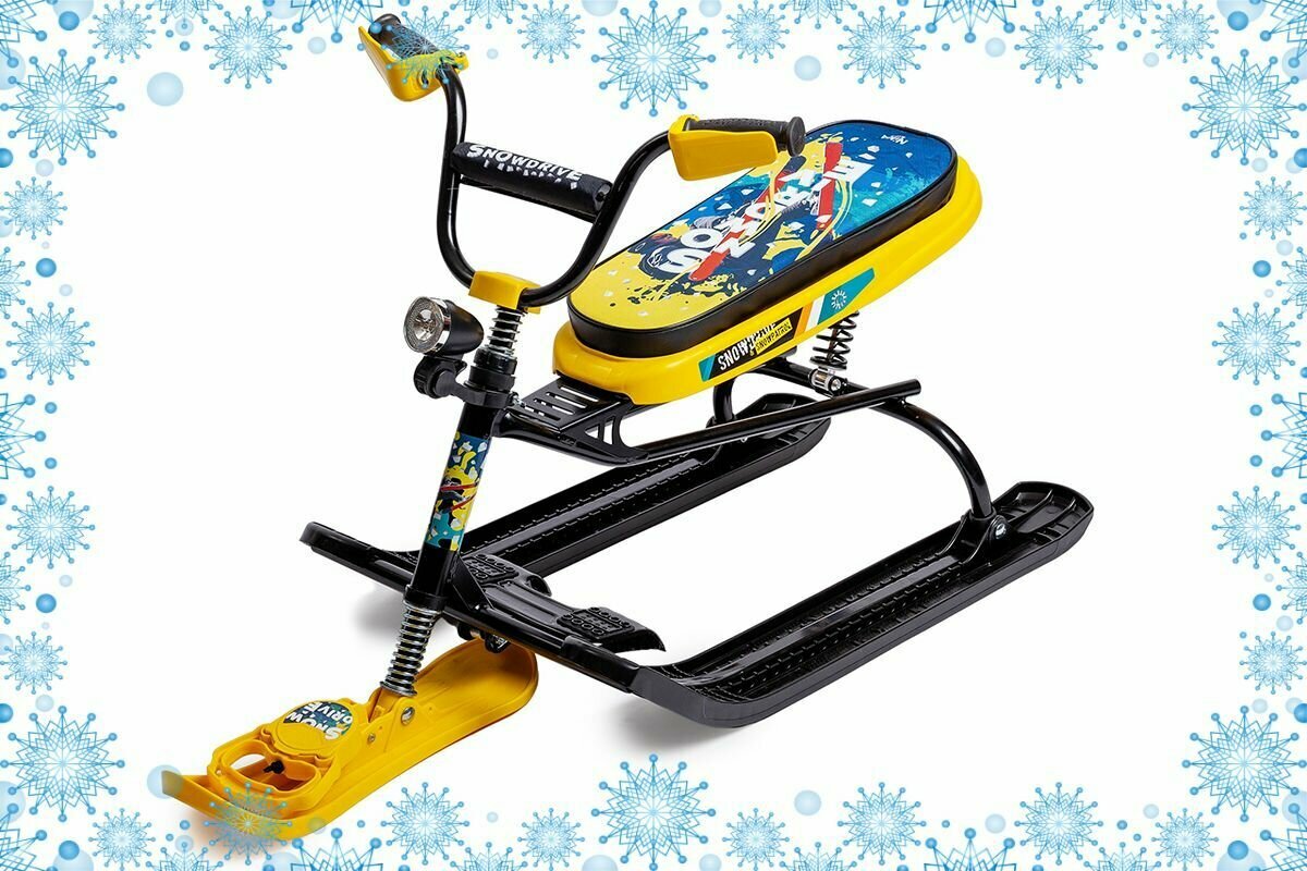 Снегокат СНД3 для детей и взрослых Nika nika kids snowdrive5. Грузоподъемность до 100кг. Велоруль, фонарь, тормоз, трос с авто намоткой черный каркас