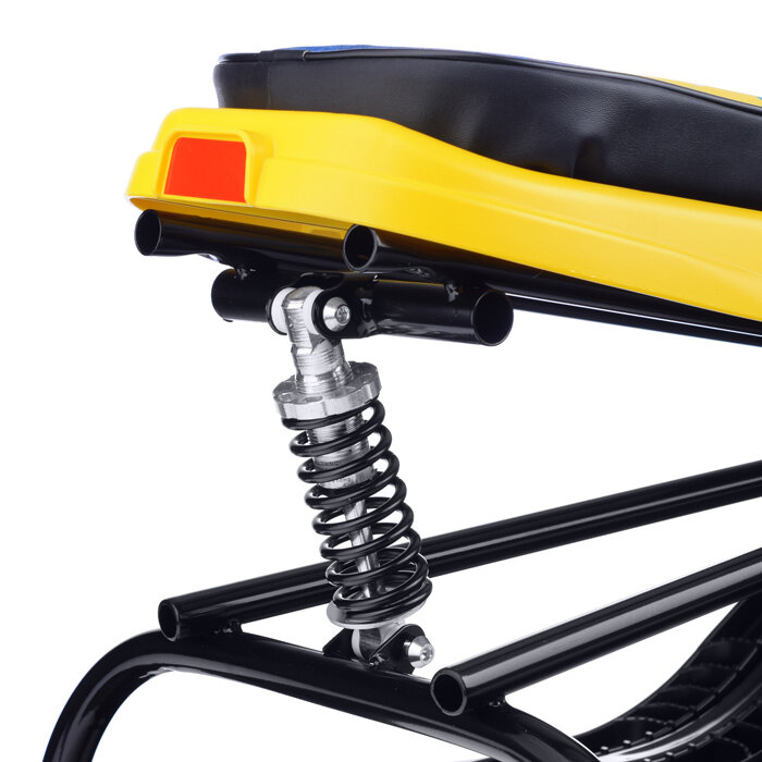 | Минусы: | Нет упоров на заднем амортизаторе. Если всем весом взрослого садитесь на снегокат, то фактически убиваете стойку амортизатора |
