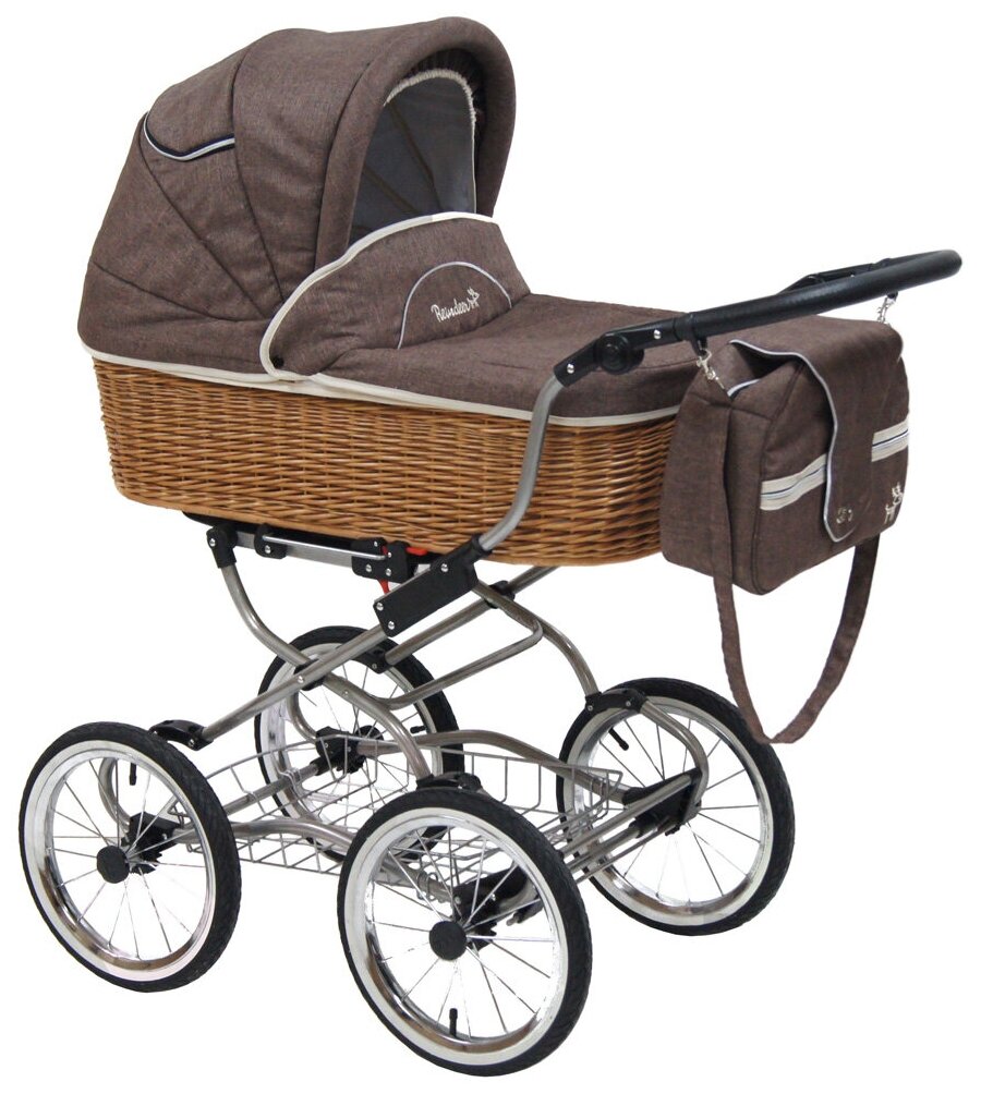 Коляска-люлька детская Reindeer Wiklina Eco-Line set 1, цвет коричневый EL-1, всесезон, увеличенная люлька, ручное плетение из лозы