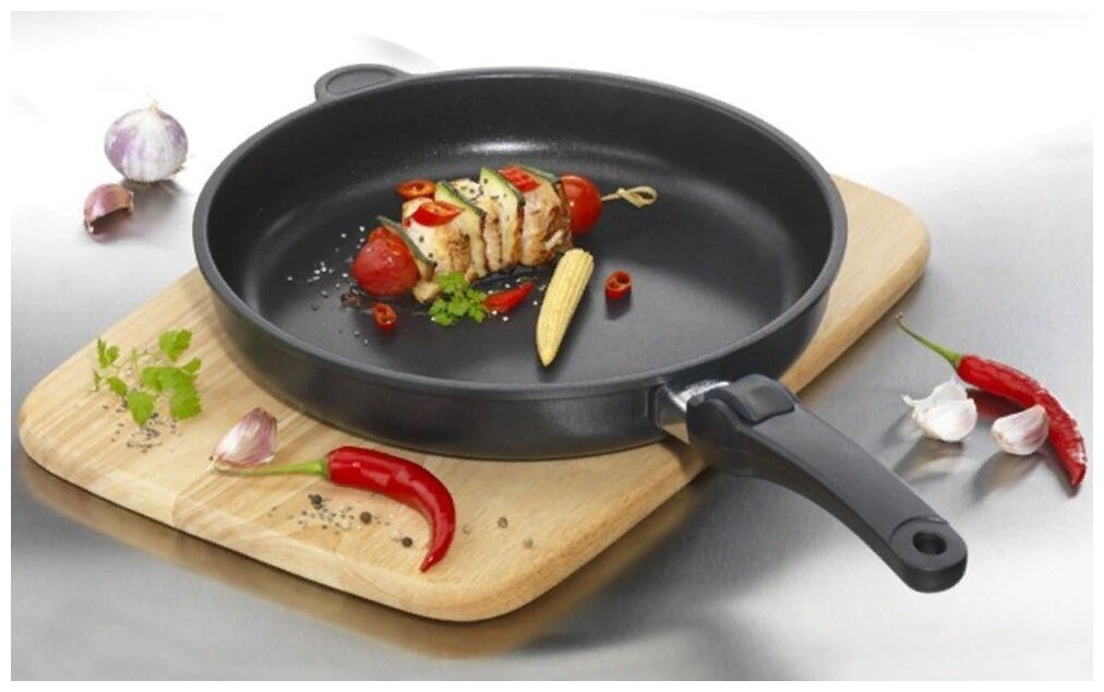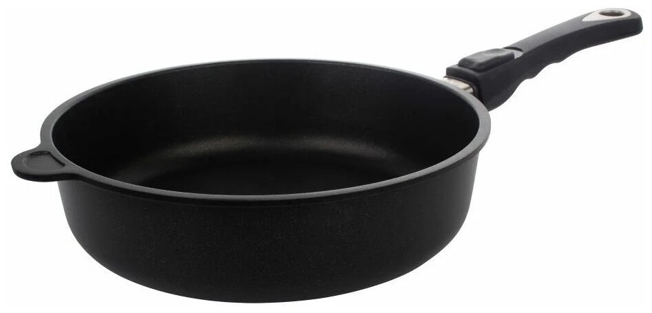 СохранитьCотейник из алюминия AMT frying pans с антипригарным покрытием, диаметр 26см, без крышки, съемные ручки из бакелита, черный, AMT726, Германия интересное: