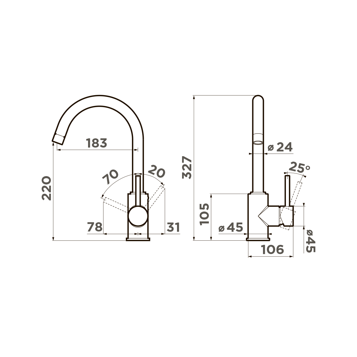 | Высота излива | 220 мм / 327 мм |