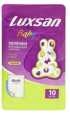 Пеленки одноразовые детские Luxsan Baby PREMIUM 60х90, 10 шт.