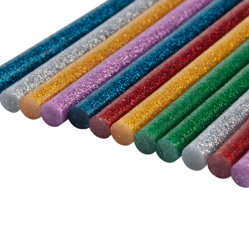 Стержни для клеевого пистолета 7 мм цветные с блестками 100 мм, 12 штук