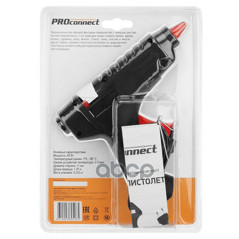 Пистолет клеевой, 60Вт, Ø11мм, блистер PROconnect