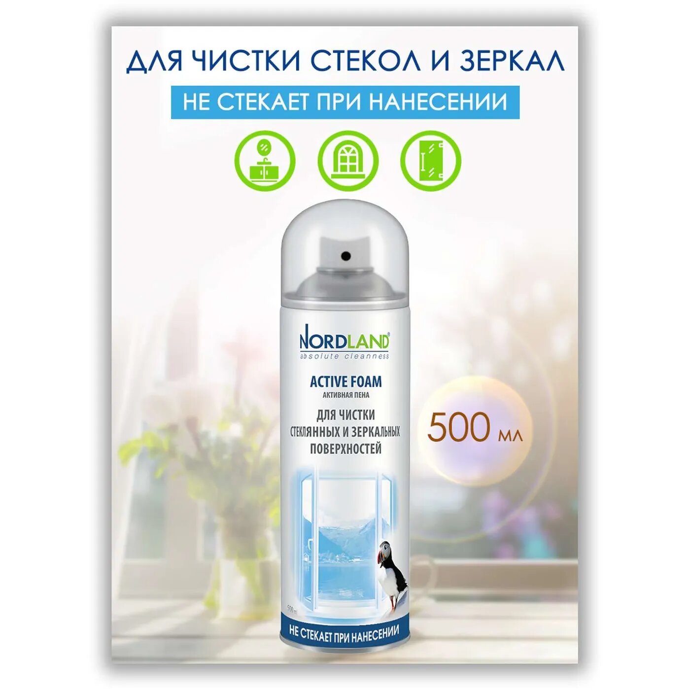 Nordland Active Foam для чистки зеркальных и стеклянных поверхностей, 500 мл