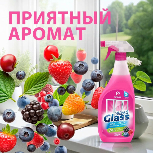 GRASS Средство для мытья стёкол и зеркал Clean Glass "Лесные ягоды", 600 мл
