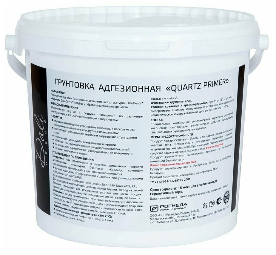 DALI-DECOR QUARTZ PRIMER / дали декор кварц праймер грунтовка адгезионная акриловая белый 6 кг