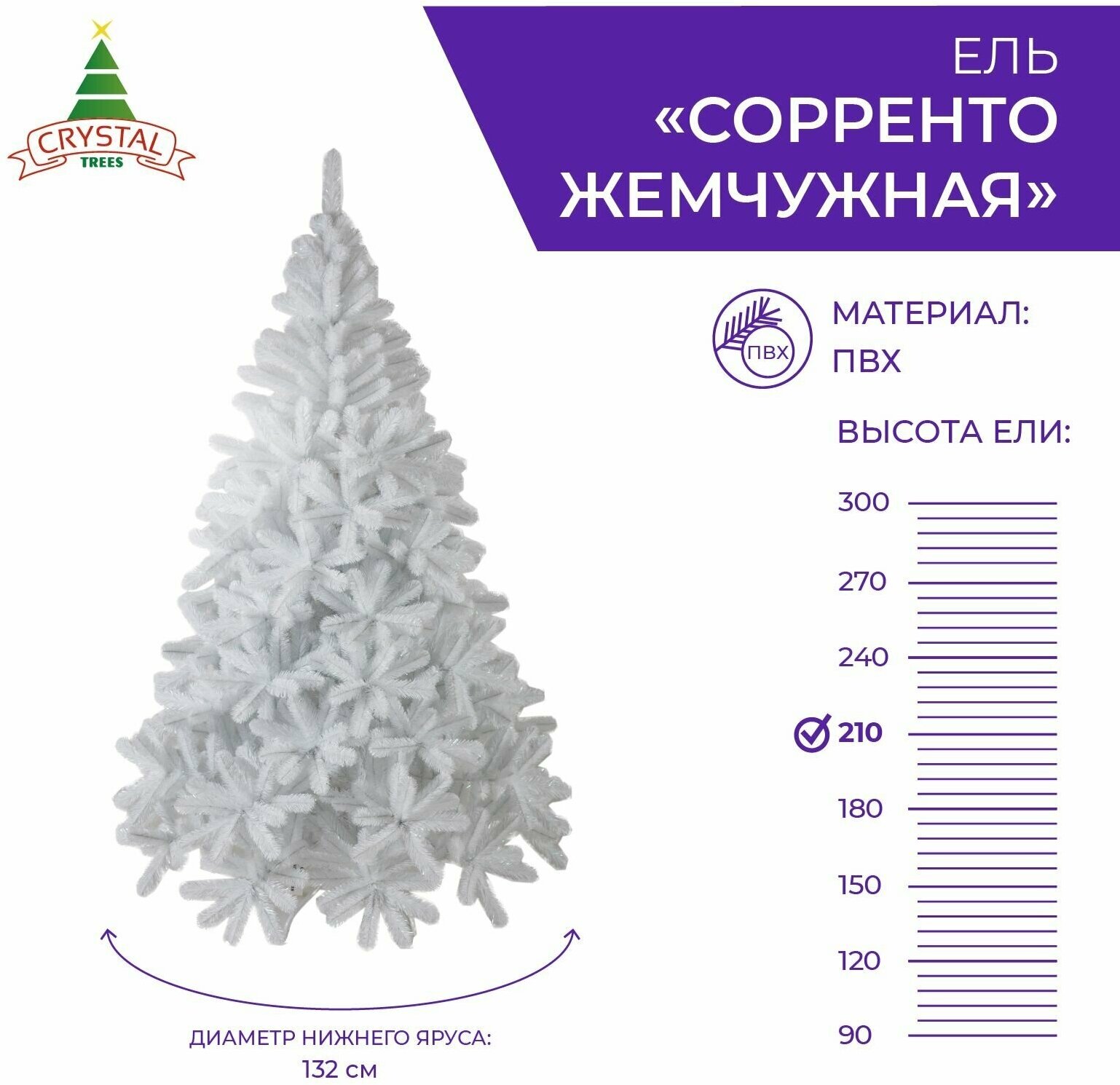 Искусственная елка новогодняя Из ПВХ Crystal Trees сорренто жемчужная ,высота 210 см